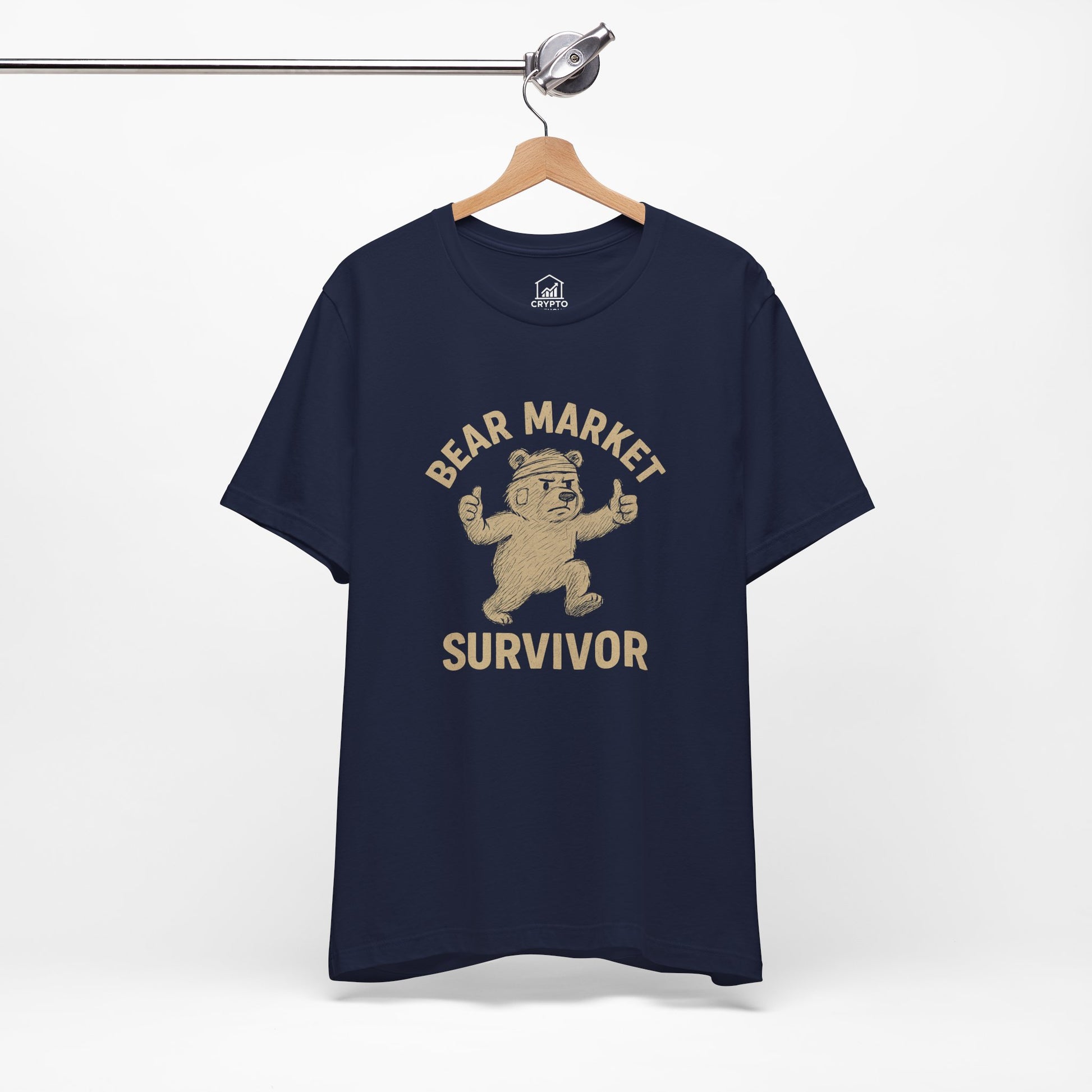 A bold, playful tribute to the resilience of crypto investors. Featuring a fierce, hand-drawn bear rocking a bandage and a pair of thumbs up, this design symbolizes the determination and grit it takes to survive the wild swings of the crypto market. Whether you're holding strong or riding out the lows, this shirt is a badge of honor for those who know what it means to HODL.
