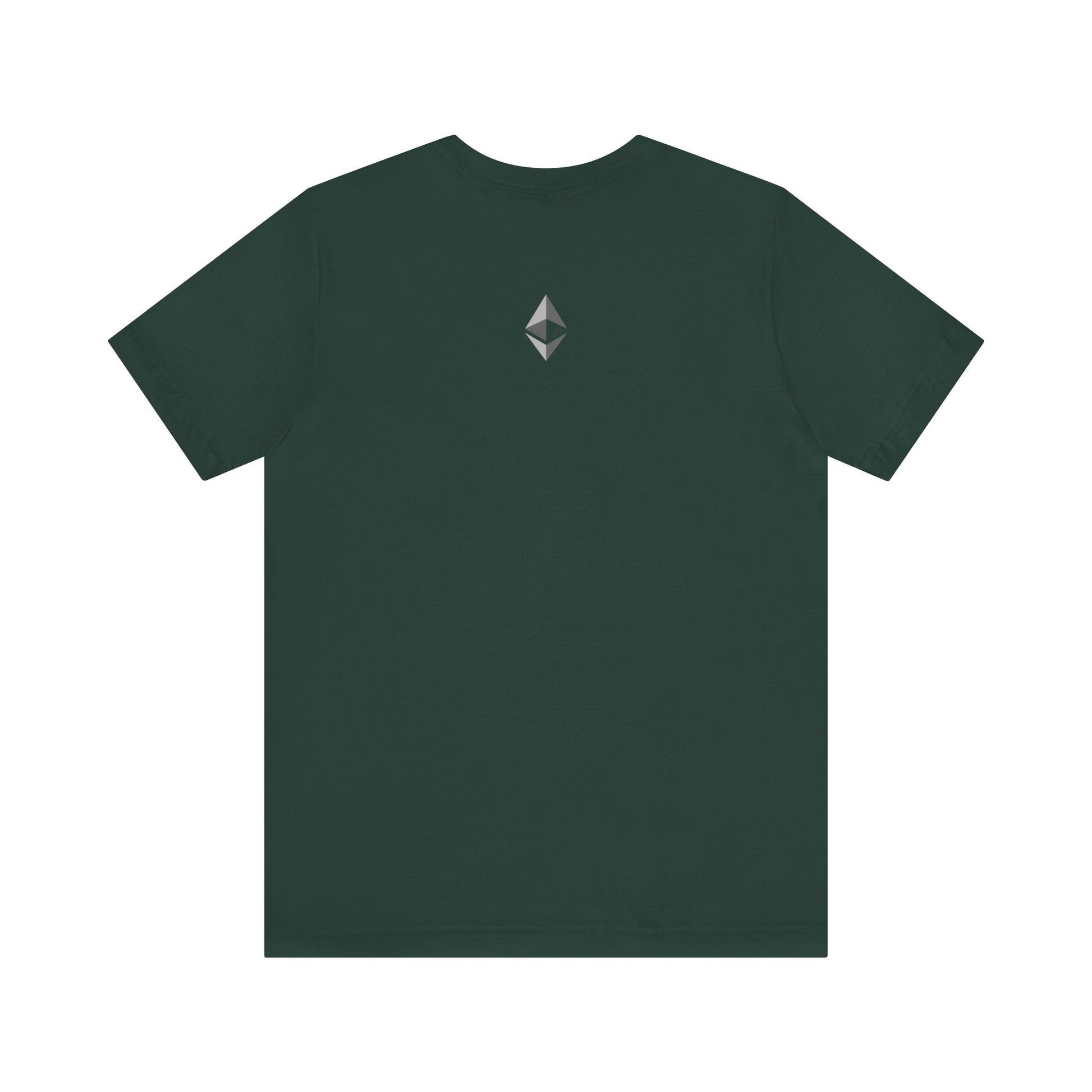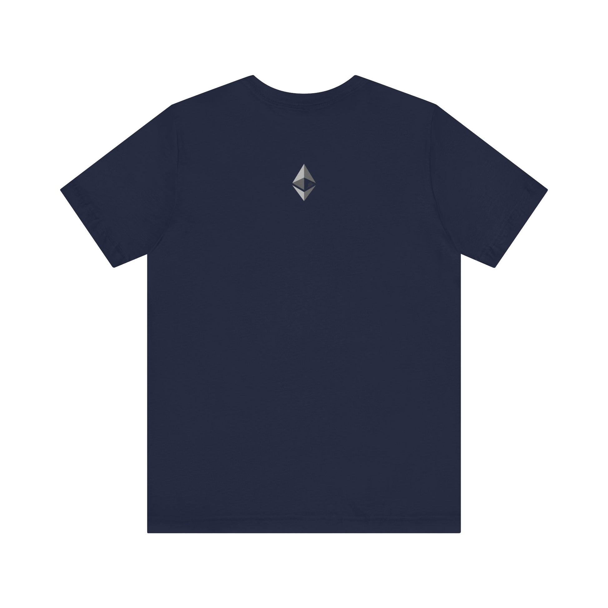 On the back, a small, crisp white Ethereum logo sits quietly beneath the neckline. It’s a subtle nod to the network that’s reshaping the world of finance, art, and technology.