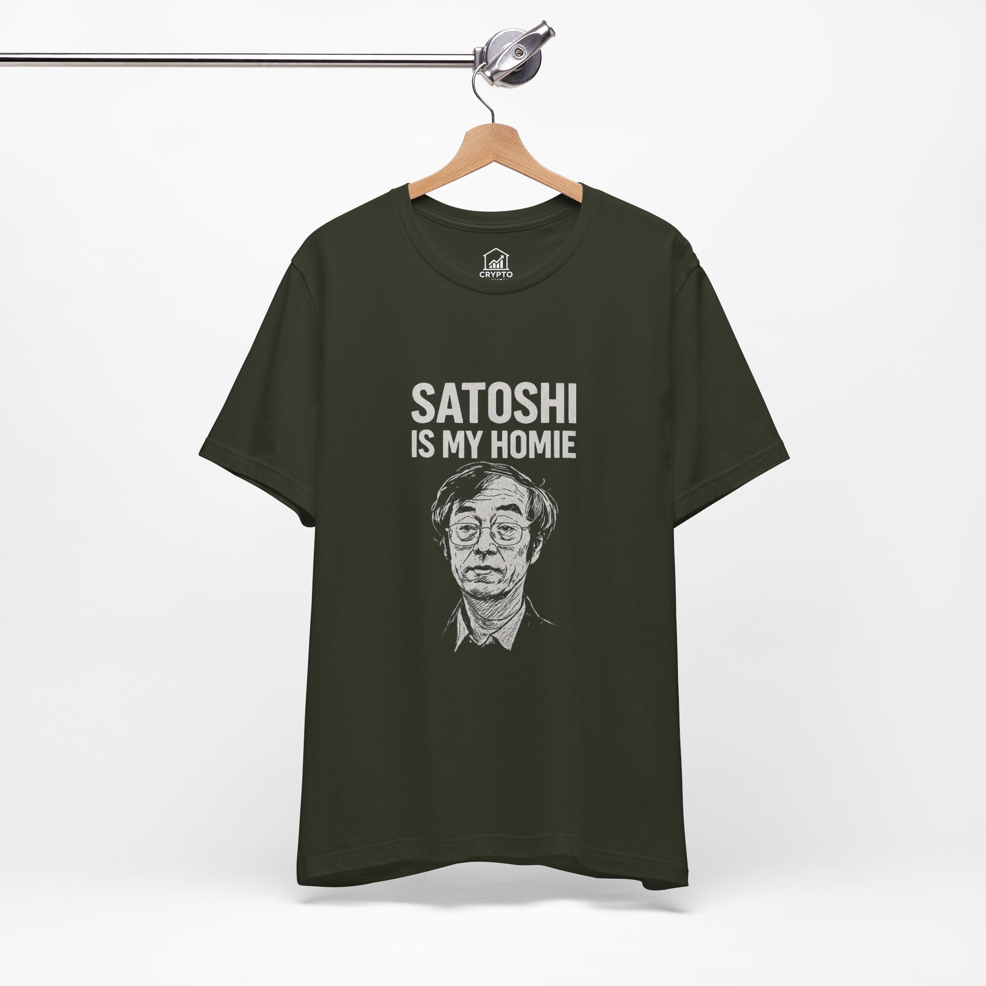 Rock this "Satoshi Is My Homie" tee and let the world know you’re not here to trade vibes—you’re here to stack sats and spread the gospel of decentralization.
