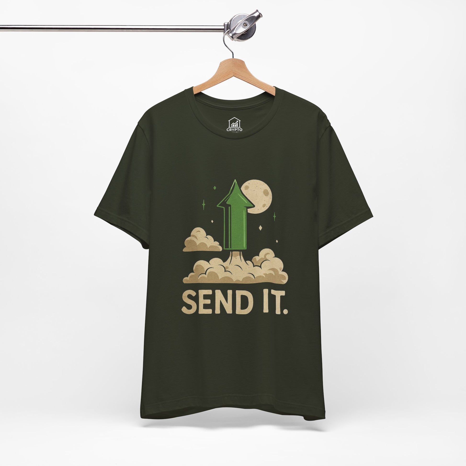 Whether you’re a Bitcoin maxi, altcoin gambler, or memecoin believer, this shirt is your rallying cry: SEND IT.