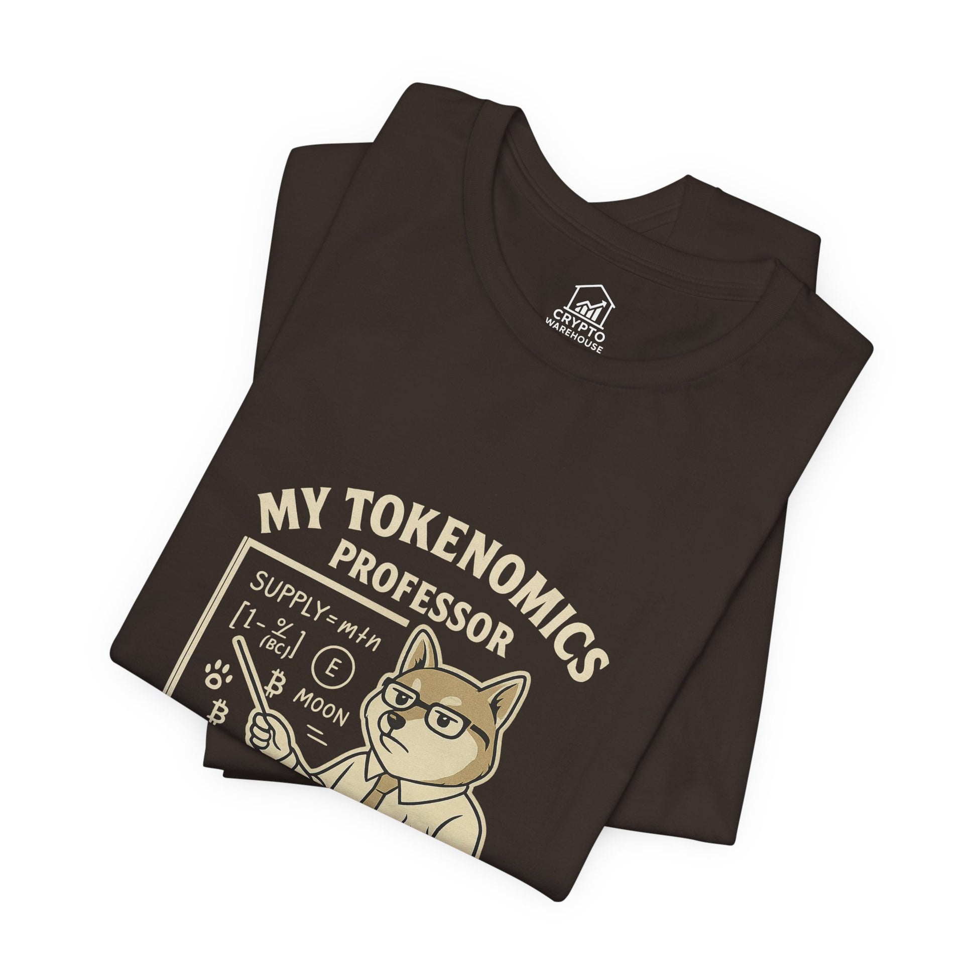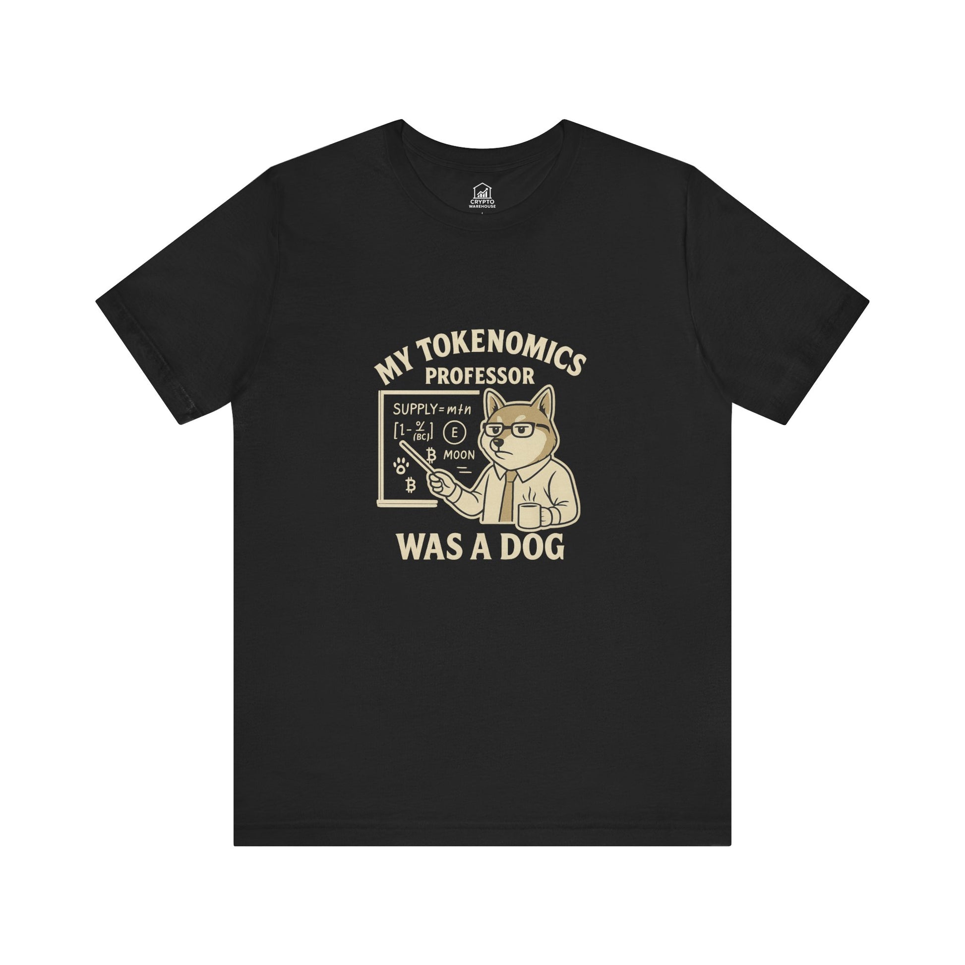 Let’s face it — if you learned tokenomics from YouTube, Discord, or a Telegram thread written by a guy with a Shiba Inu avatar… you’re not alone. This hilarious and ultra-relatable tee features your favorite furry financial mentor breaking down the blockchain one chalkboard at a time.